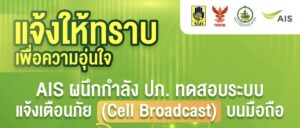 AIS แจ้งประชาชนล่วงหน้า 20 ม.ค.นี้ ร่วมกับ ปภ. ทดสอบระบบเตือนภัยผ่าน Cell Broadcast พร้อมกันทั่วประเทศ 19/01/2026