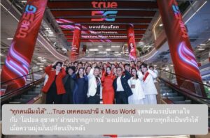 “ทุกคนมีมงได้”…True เทคคอมปานี x Miss World จุดพลังแรงบันดาลใจกับ ‘โอปอล สุชาตา’ ผ่านปรากฏการณ์ ‘มงเปลี่ยนโลก’ เพราะทุกสิ่งเป็นจริงได้ เมื่อความมุ่งมั่นเปลี่ยนเป็นพลัง 26/01/2026