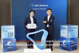 efin group เปิดตัว “efin.finance” แพลตฟอร์มข้อมูลการลงทุน ผสาน AI ช่วยนักลงทุนเข้าถึง Insight ตลาดทุนได้ง่ายขึ้น 26/03/2026