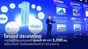 ไฮเออร์ ประเทศไทย ทุ่มงบปี 69 กว่า 1,200 ลบ. ขยายเครือข่าย “จุดจำหน่าย ดีลเลอร์ โมเดิร์นเทรด และออนไลน์” ทั่วประเทศ พร้อมเปิดตัวไลน์อัปผลิตภัณฑ์กว่า 50 รายการ เร่งเครื่องสู่ AI Smart Home Ecosystem เต็มพอร์ต 27/03/2026
