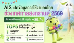 AIS เปิดอินไซต์เครือข่ายสงกรานต์ 69 ชี้ 5G โตแรง 86% นักท่องเที่ยวใช้งานโรมมิ่งเพิ่มขึ้นต่อเนื่อง “หาดพัทยา” ครองแชมป์ใช้ดาต้าสูงสุด 16/04/2026