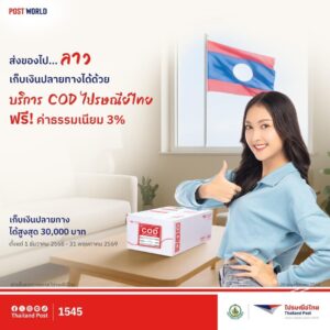 พ่อค้าแม่ค้ามีเฮ! ไปรษณีย์ไทยเสริมศักยภาพผู้ค้าไทยสู่ตลาดลาว จัดโปรส่งของไปลาว ฟรีค่าธรรมเนียม COD 3% ถึง 31 พฤษภาคม 2569 02/12/2025