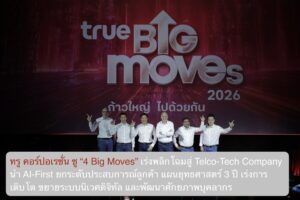 ทรู คอร์ปอเรชั่น ชู “4 Big Moves” เร่งพลิกโฉมสู่ Telco-Tech Company นำ AI-First ยกระดับประสบการณ์ลูกค้า แผนยุทธศาสตร์ 3 ปี เร่งการเติบโต ขยายระบบนิเวศดิจิทัล และพัฒนาศักยภาพบุคลากร 09/03/2026