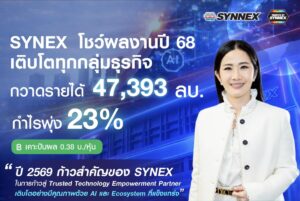 SYNEX โชว์ผลงานปี 68 เติบโตทุกกลุ่มธุรกิจ กวาดรายได้ 47,393 ลบ. กำไรพุ่ง 23% เคาะปันผล 0.38 บ./หุ้น 27/02/2026