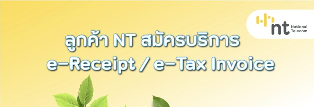 บริษัท โทรคมนาคมแห่งชาติ จำกัด (มหาชน) หรือ NT เชิญชวนผู้ใช้บริการยุค Green & Digital ที่ใส่ใจสิ่งแวดล้อม สมัครรับ e-Bill/e-Receipt/e-Tax Invoice ผ่านระบบ NT Quick e-Tax รองรับผู้ใช้บริการประเภทบุคคลธรรมดาที่ใช้บริการ NT Fixed Line /NT Broadband ของเลขหมาย NT (TOT) และชำระค่าบริการผ่านMobile Banking , mPay , ShopeePay และตู้บุญเติม ที่ต้องการความสะดวกสบายในการรับใบแจ้งหนี้ ใบเสร็จรับเงิน และใบกำกับภาษีจากการใช้บริการ (e-Bill/e-Receipt/e-Tax Invoice) ในช่องทางอิเล็กทรอนิกส์ โดยสามารถดำเนินการด้วยตนเองผ่านทาง NT Quick e-tax