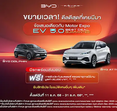 ข้อเสนอดีลดีที่สุดแห่งปีจาก บริษัท เรเว่ ออโตโมทีฟ จำกัด ภายใต้ กลุ่มธุรกิจเรเว่ ผู้จัดจำหน่ายและให้บริการหลังการขายรถยนต์พลังงานใหม่ บีวายดี และ เดนซ่า อย่างเป็นทางการในประเทศไทย จะมีผลถึงวันที่ 31 ธันวาคม 2568 ให้คุณได้เป็นเจ้าของรถยนต์ บีวายดี และ เดนซ่า ในราคาพิเศษที่สุด โดยในปี 2569 ที่มาตรการ EV 3.0 สิ้นสุดลง ราคาจำหน่ายรถยนต์ไฟฟ้าในประเทศไทย จำเป็นที่จะต้องปรับขึ้นไปอยู่ ในระดับที่สูงกว่าราคาในปัจจุบัน