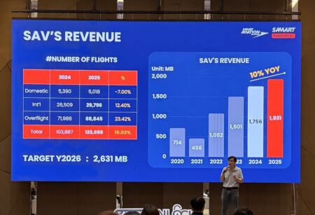 Backlog ณ สิ้นปีมีมูลค่ามากกว่า 8.700 ล้านบาท โดยปีนี้ตั้งเป้ารายได้ทั้งกลุ่มที่ 6,800 ล้านบาท โดยเป็นของ บมจ.สามารถ เอวิเอชั่น โซลูชั่น หรือ SAVประมาณ 2,600 ล้านบาท เติบโตขึ้น 30% ด้วยโอกาสทางธุรกิจหลายด้าน โดยเฉพาะจากการเข้าประมูลโครงการ จำนวน 2 โครงการ มูลค่ารวมกว่า 2,300 ล้านบาท ควบคู่กับรายได้จากบริการ Overflight ที่มีแนวโน้มเติบโตอย่างต่อเนื่องตามปริมาณการบินที่เพิ่มขึ้น ซึ่งได้รับแรงหนุนจากการฟื้นตัวของการเดินทางระหว่างประเทศ โดยเฉพาะเส้นทางจากเวียดนามและจีน
