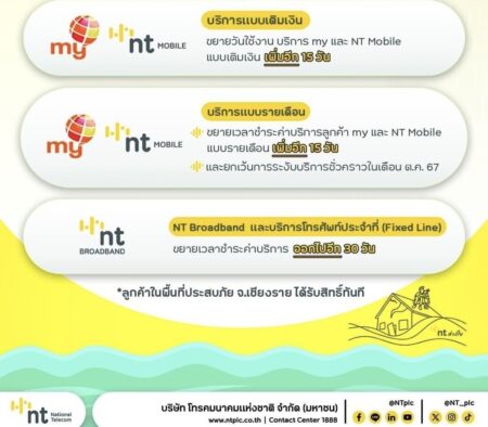 – ขยายเวลาชำระค่าบริการลูกค้า my และ NT Mobile แบบรายเดือนเพิ่มอีก 15 วัน