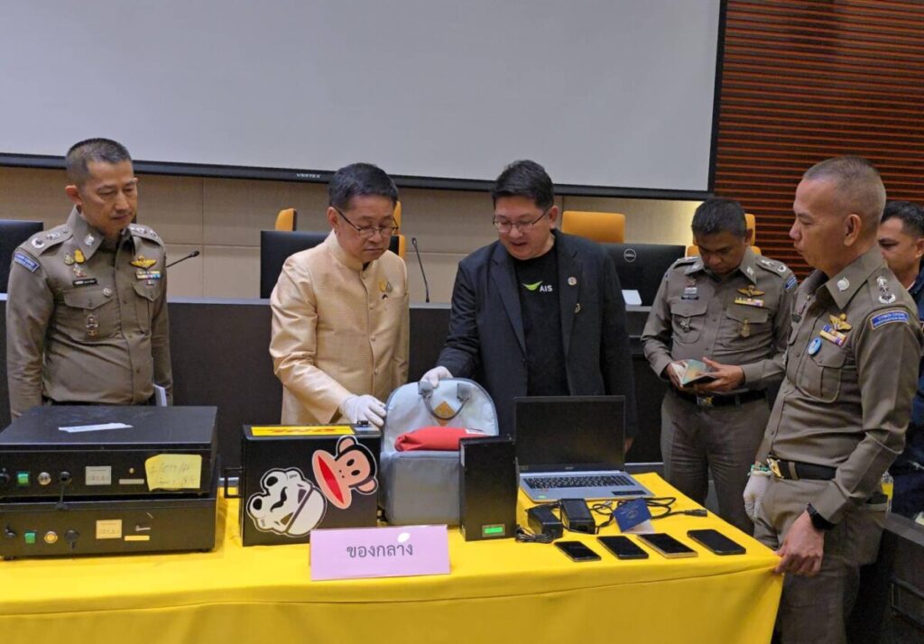 พล.ต.ต.สถิตย์ พรมอุทัย ผบก.สอท.3 สั่งการให้ พ.ต.อ.คัมภีร์ พรหมสนธิ รอง ผบก.สอท.3 พร้อมด้วย พ.ต.อ.อดิชาต อมรประดิษฐ ผกก.วิเคราะห์ข่าวและเครื่องมือพิเศษ บก.สอท.3 นำกำลังข้าราชการตำรวจบก.สอท.3 เปิดปฏิบัติการ “หักขาแก๊งอาชญากรรมข้ามชาติ”ลงพื้นที่หาข่าวร่วมกับเจ้าหน้าที่ผู้ให้บริการเครื่อข่ายเอไอเอส เพื่อทำการสืบสวนหาเครื่องจำลองสถานีดังกล่าวจนกระทั้งเมื่อ วันที่ 8 เม.ย.67 เวลา 18.00 น. พบชายต้องสงสัยจำนวน 2 คน ทราบภายหลังเป็นชาวฮ่องกง เดินอยู่ที่ห้างสยามพารากอน โดยชายคนหนึ่งนั้นสะพายกระเป๋าเป้เหมือนมีสิ่งของมีน้ำหนักอยู่ภายใน เชื่อว่าน่าจะเป็นเครื่องจำลองสถานีแบบพกพา เจ้าหน้าที่ตำรวจชุดจับกุมจึงได้ทำการเดินติดตาม จนพบบุคคลดังกล่าวท่าทางมีพิรุธต้องสงสัย