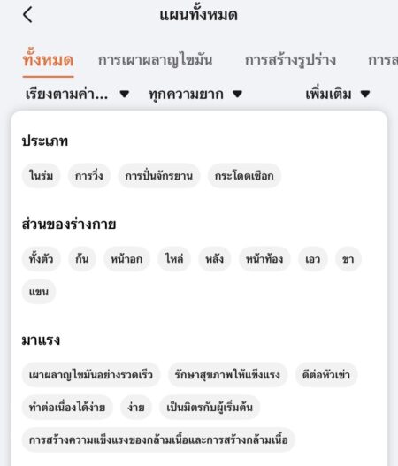 ผู้ใช้งานสามารถเลือกที่จะออกกำลังกายเสริมสร้างความแข็งแรงของร่างกายแบบเฉพาะส่วนได้ ทั้ง ตัว หน้าอก หัวไหล่ ฯ สามารถเลือกระดับความยาก ท่าขอกการออกกำลังแบบเฉพาะส่วน คุณสามารถทำตาม และฝึกได้อย่างง่ายดาย สะดวกมากๆ (อันนี้อยากแนะนำ)