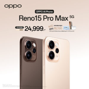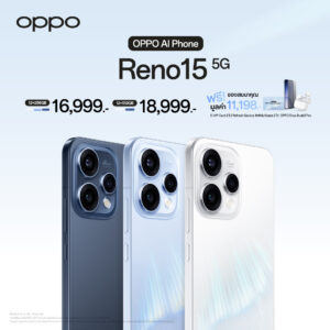OPPO ประกาศวางจำหน่าย “OPPO Reno15 Series 5G” สมาร์ตโฟนเพื่อนซี้ เทรนดี้ทุกช็อต รุ่นใหม่ล่าสุด วางจำหน่ายในราคาสุดคุ้มเริ่มต้นเพียง 11,999 บาท มาพร้อมโปรโมชั่นสุดพิเศษในช่วงวันนี้ – 28 กุมภาพันธ์ 2569 อีกทั้งยังมอบทุกประสบการณ์การใช้งานด้วย 2 ผลิตภัณฑ์ IoT ใหม่ อย่าง OPPO Watch S วางจำหน่ายในราคาเริ่มต้น 5,999 บาท และ OPPO Pad 5 ในราคาเริ่มต้น 13,999 บาท