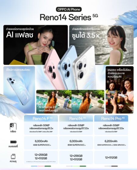 ห้ามพลาด! รีบไปเป็นเจ้าของ OPPO Reno14 Series 5G พร้อมรับทันทีของสมนาคุณสุดพิเศษ ได้ที่ OPPO Brand Shop และตัวแทนจำหน่ายที่ร่วมรายการทั่วประเทศ ตั้งแต่วันที่ 1-30 กันยายน 2568 นี้เท่านั้น