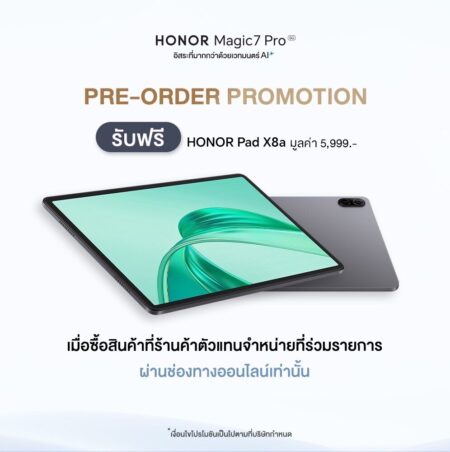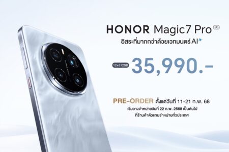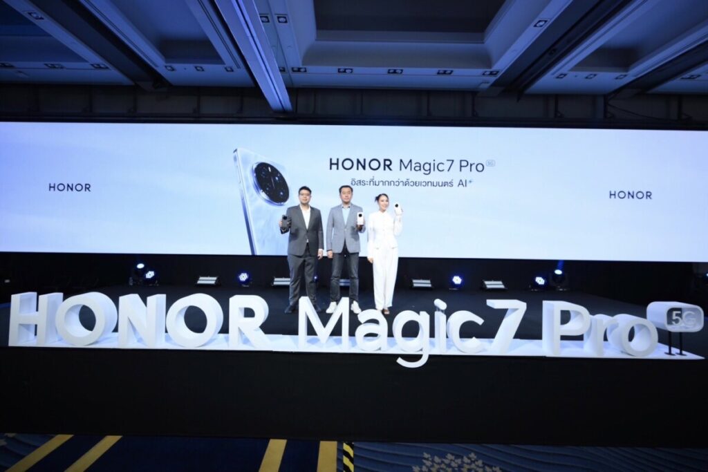 ออเนอร์ (HONOR) ประกาศเปิดตัวสมาร์ตโฟนระดับแฟลกชิป HONOR Magic7 Pro 5G อย่างเป็นทางการ ภายใต้สโลแกน “อิสระที่มากกว่าด้วยเวทมนต์ AI” โดดเด่นด้วยเทคโนโลยีกล้อง AI สุดล้ำที่ปฏิวัติการถ่ายภาพได้อย่างสมบูรณ์แบบ ด้วยความสามารถเหนือชั้นกับกล้องเทเลโฟโต้ถ่ายภาพคมชัดความละเอียด 200 ล้านพิกเซล ผสานพลัง AI Motion Sensing Capture ตัวช่วยเก็บภาพเคลื่อนไหวในทุกอารมณ์ได้อย่างไร้ที่ติ พร้อมเสริมเกราะความปลอดภัยด้วย AI Deepfake Detection เทคโนโลยีอัจฉริยะที่ช่วยตรวจจับและป้องกันภาพปลอมแปลงอัตโนมัติได้อย่างแม่นยำ ตลอดจนก้าวข้ามกำแพงภาษาด้วย AI Translation ที่เปลี่ยนทุกการสนทนาให้ไร้ข้อจำกัด แปลภาษาได้แบบเรียลไทม์ เพื่อการสื่อสารที่ราบรื่นและง่ายกว่าที่เคย เปิดตัวในราคา 35,990 บาท* โดยเปิดให้พรีออเดอร์ พร้อมรับข้อเสนอสุดพิเศษทั้งออนไลน์และออฟไลน์ได้แล้วตั้งแต่วันนี้ – 21 กุมภาพันธ์ 2568