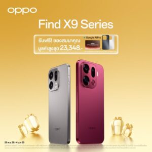 เมื่อซื้อ OPPO Find X9 Pro และ OPPO Find X9 รับฟรี E-VIP Card ประกันจอแตก 1 ครั้ง ภายในระเวลา 2 ปี, ฟรี Google AI Pro 3 เดือน, Light Luxury Magnetic Case มูลค่ารวม 23,348 บาท และมูลค่ารวม 19,348 บาท ตามลำดับ ตั้งแต่วันนี้ ถึง 4 มกราคม 2569 ที่ OPPO Brand Shop และตัวแทนจำหน่ายทั่วประเทศ