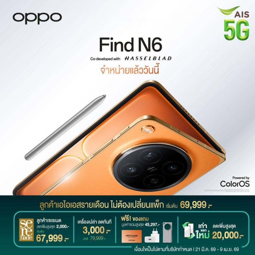 OPPO Find N6 เรียบกว่า อิสระกว่า ทรงพลังทุกมิติ พร้อมจับมือ AIS มอบโปรสุดคุ้ม ราคาเริ่มต้น 67,999 บาท