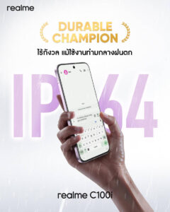 realme เปิดราคา “realme C100i” สมาร์ตโฟนระดับเริ่มต้นสายอึดอย่างเป็นทางการในราคา 4,999 บาท ชูคอนเซ็ปต์ “7000mAh พลังอึด ทนทานระดับแชมป์” อัดฟีเจอร์ระดับพรีเมียมเต็มอัตรา มอบประสิทธิภาพเกินราคา เพื่อสร้างมาตรฐานใหม่ของมือถือหลักพันสู่อุตสาหกรรม    สมาร์ตโฟน