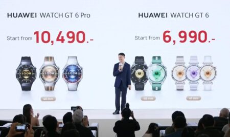 HUAWEI WATCH GT 6 Series วางจำหน่ายอย่างเป็นทางการแล้วในประเทศไทย โดย HUAWEI WATCH GT 6 Pro (46 มม.) ราคาเริ่มต้น10,490 บาท มีให้เลือกทั้งสีดำ สีน้ำตาล และสีไทเทเนียม ส่วน HUAWEI WATCH GT 6 (46 มม.) ราคาเริ่มต้น 6,990 บาท มาพร้อมสีเขียว และสีดำ และ HUAWEI WATCH GT 6 (41 มม.) ราคาเริ่มต้น 6,990 บาท มีให้เลือกในสีม่วง สีขาวสายหนัง และสีทอง Milanese Gold พิเศษ! เมื่อซื้อระหว่าง 2 ตุลาคม 2568 – 2 พฤศจิกายน 2568 รับของสมนาคุณมูลค่ารวมสูงสุด 8,146 บาท อาทิ HUAWEI FreeBuds 6i (สีขาว) มูลค่า 4,299 บาท, HUAWEI Health+ Membership 3 เดือน มูลค่า 357 บาท และฟีเจอร์กอล์ฟระดับพรีเมียม มูลค่า 3,490 บาท พร้อมประกันภัยALive Powered by AIA คุ้มครองชีวิตจากการเจ็บป่วยและอุบัติเหตุ 1 ปี สูงสุด 200,000 บาท
