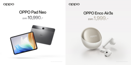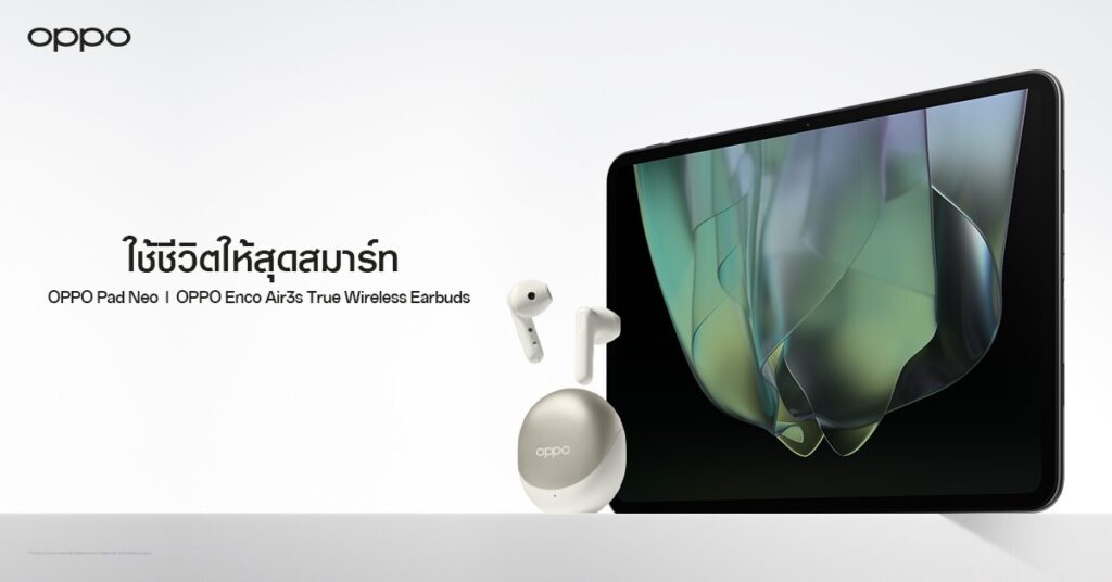 ออปโป้ ไทยแลนด์ ขนทัพผลิตภัณฑ์ IoT เปิดตัวยิ่งใหญ่รับต้นปี นำโดย “OPPO Pad Neo” แท็บเล็ตรุ่นใหม่ให้จอยทุกความสนุกเหนือระดับ จัดเต็มทั้งหน้าจอขนาดใหญ่11.4 นิ้ว และลำโพง 4 ตัว ในราคา 10,990 บาท เสริมทัพด้วย “OPPO Enco Air3s” หูฟังไร้สายดึงดูดทุกสายตาด้วยเคสชาร์จสีทอง Champagne Gold ในราคา 1,999 บาท และ “OPPO Enco Buds2” หูฟังไร้สายตัวเล็กเบสทรงพลัง ในสีใหม่สีฟ้า Lilac Blue ราคา 999 บาท เปิดตัวพร้อมกับโปรโมชันสุดอลังการ สัมผัสผลิตภัณฑ์ IoT รุ่นล่าสุดจากออปโป้ได้แล้ววันนี้ ณ OPPO Brand Shopทุกสาขา และตัวแทนจำหน่ายทั่วประเทศ